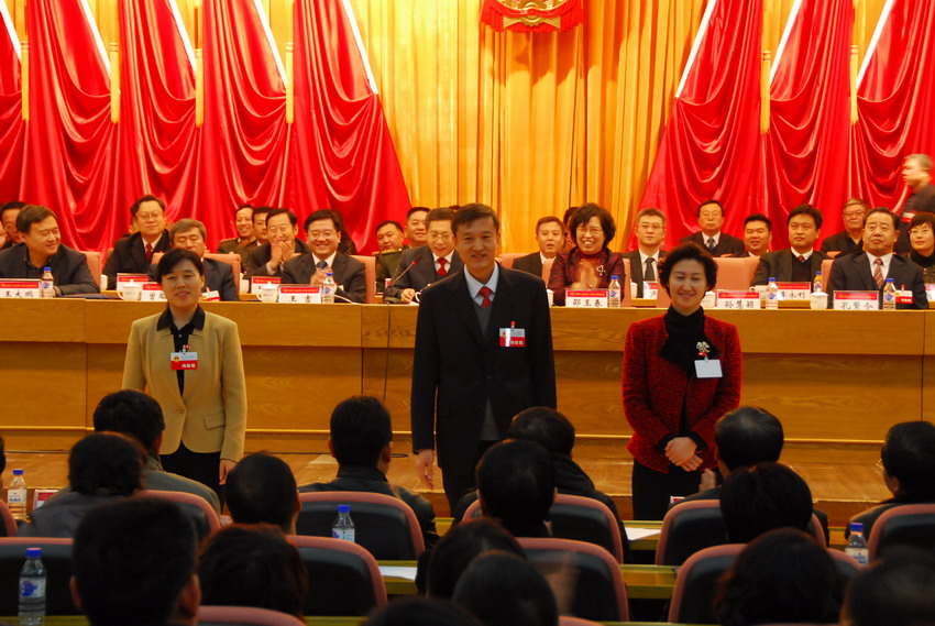 图为新当选的二道区十七届人大常委会主任、副主任与代表见面